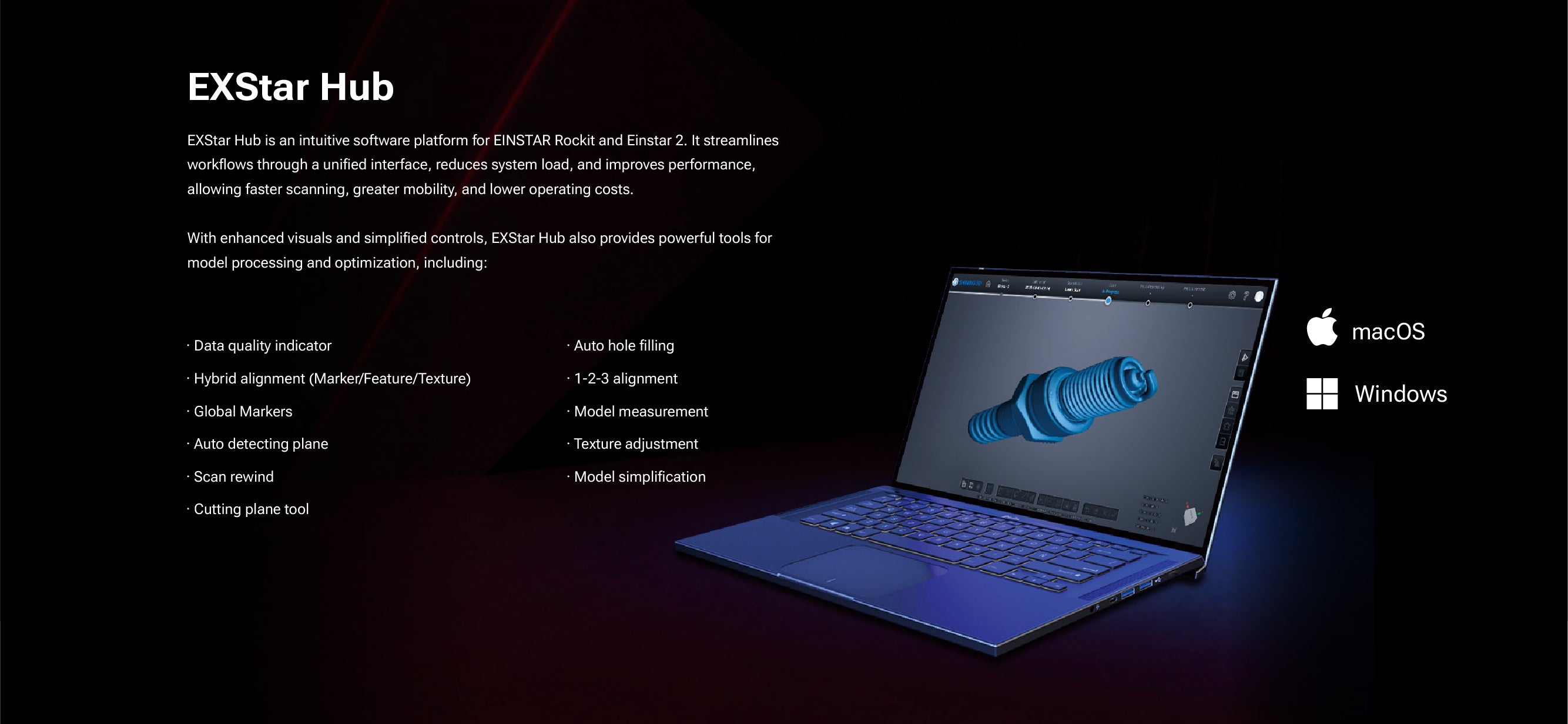 The EINSTAR 2 is a major step up from the original. It introduces a new laser mode for capturing finer details on small objects and can handle reflective surfaces without spray. The tracking in IR mode is even better, and the true wireless design offers greater flexibility. Furthermore, the new software delivers dramatically faster processing speeds and many other refined features to explore.
